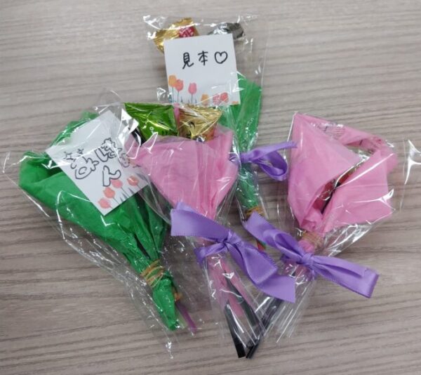 その準備として、女子の皆さんでキャンディブーケの試作会をしました🍭