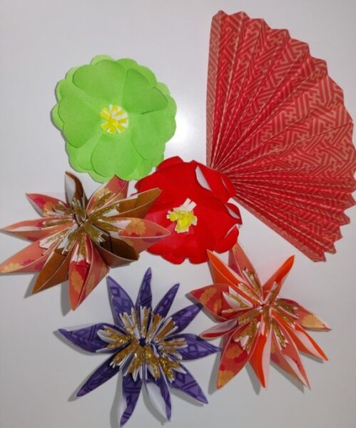 まずは折り紙でお花を作ります!