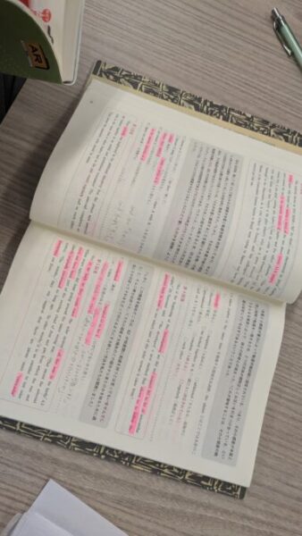 ▲いつも夜遅くまで自習をしているA君のテキスト