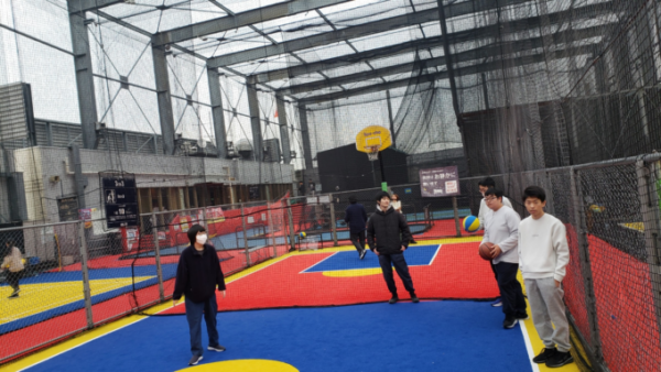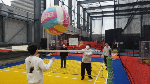 まずは屋外スペースで、バレーボールやバスケットボールをしました🏀