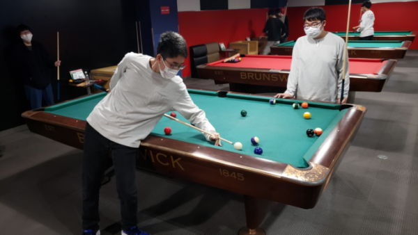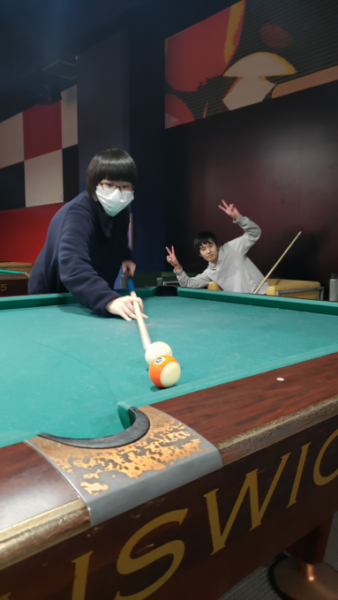 ビリヤードは経験者の大川さんに教わりながらしたのですが、D君がセンスを発揮して、難易度の高い「バックハンド」を成功させていました🎉