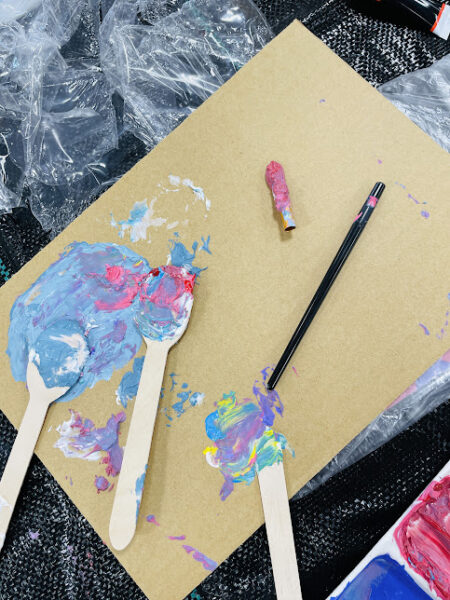 (粘り気のある絵具とペーストを混ぜ合わせ、