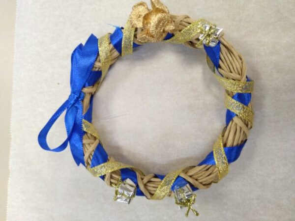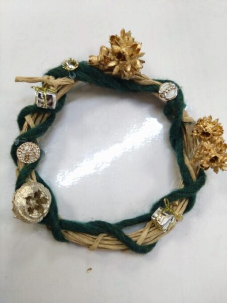 クリスマス感溢れる色合いのお洒落なリースを作り上げた Iさん