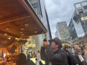スマホを構えたり、自分の一眼レフカメラを構えたりと