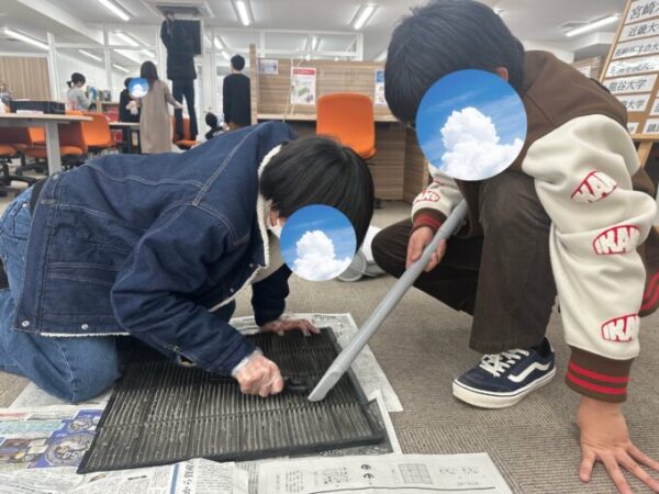 掃除場所は、机、エアコン、窓、玄関、トイレなど…キャンパス全部です!