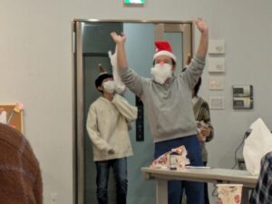 お菓子パーティーをしつつ、徳島キャンパス&クリスマスに関するクイズゲームをしました!