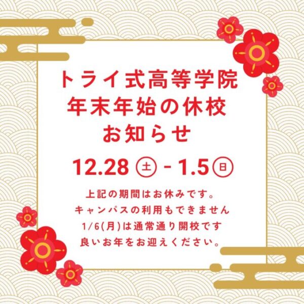 12月28日(土)~1月5日(日)まで キャンパスは休校となります。