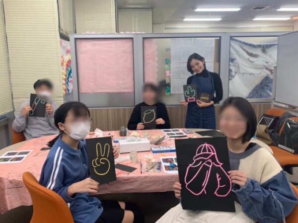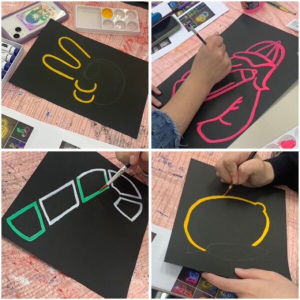 11月2度目の講座では、アクリル絵の具でネオンライト💡の表現にチャレンジしました!