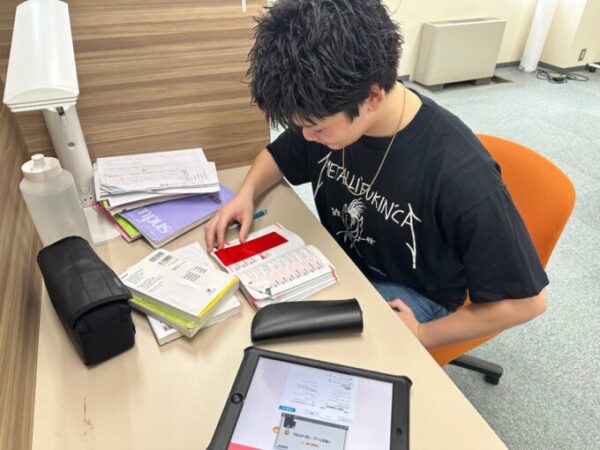 トライオリジナルのAI学習システムを使って自習をするKくん