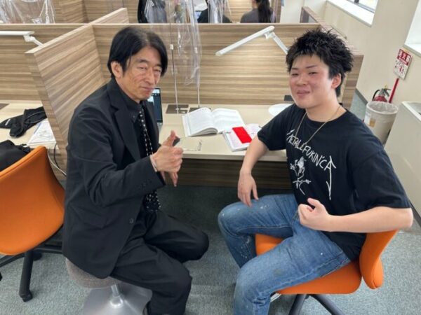 マンツーマン指導で時々笑みを見せながら授業しています(^^)