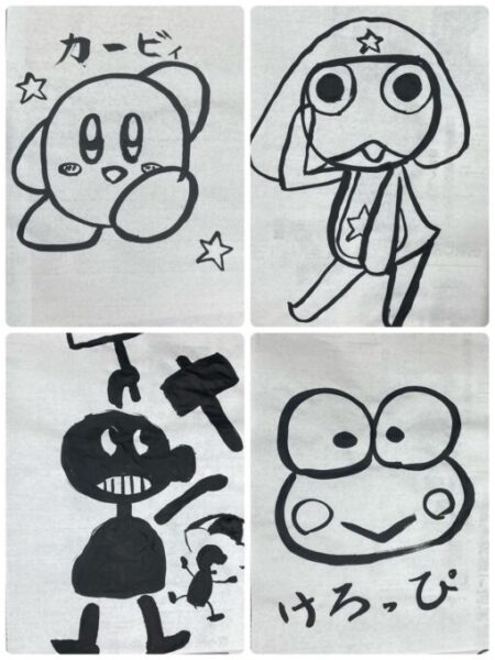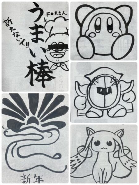 それぞれ書きたい「絵」や「言葉」、「今年の目標」など…自由に、みんなでワイワイお話ししながら書道をしました🖌️