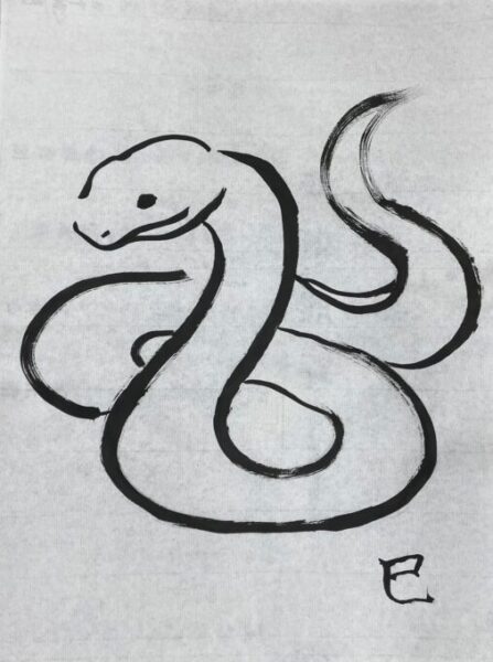 美術部だった生徒が筆で巳年の絵を描いてくれました。