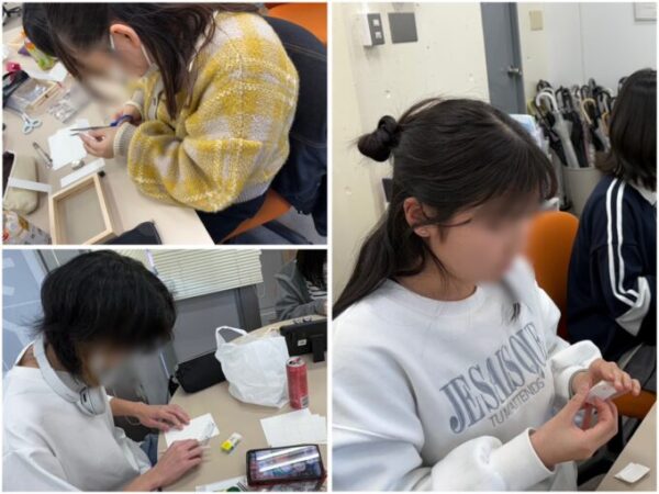 今回、作り方は簡単ですが、紙のサイズを測って切ったり、ズレない様に穴を開けたり、数字を書いたりと地道な作業が多めです😅35枚分用意しなくてはいけないので、なかなかの分量ですが、みんなめげずに作業に取り組みました。