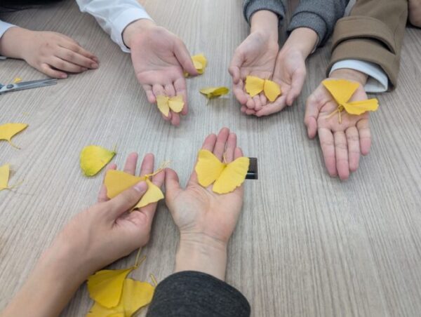 YouTubeでたまたま見た、いちょうの葉を使った蝶々作り♪