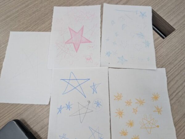 最後に面白かったのが、O先生からオススメいただいた『☆を書く心理テスト』星を書く順番で性格に違いが出るようで😲「久しぶりに🌟書いたなぁ」とついでにたくさん書いちゃいました✍