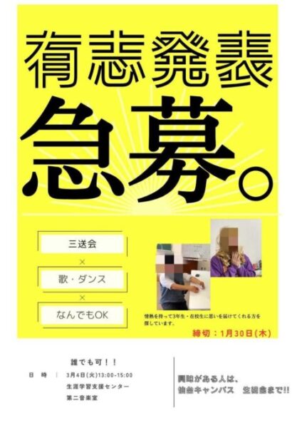 3月4日(火)に行う三送会に関してのお知らせです!!