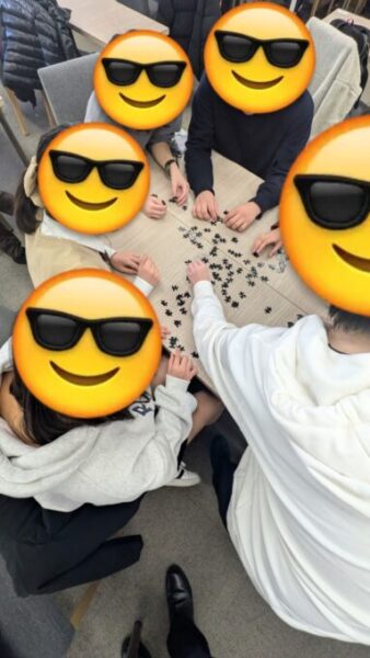 スタッフが突然買ってきたパズルに熱中する生徒!