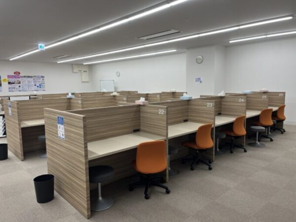 ブースでは、授業時に使うスペースです。先生との一対一の授業を行います。