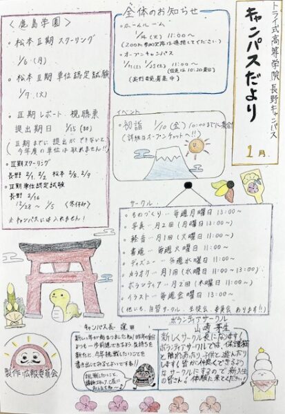 1月キャンパスだよりをお届けします