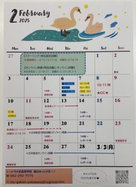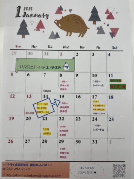 1月2月はイベント、スクーリングや単位認定試験もあり予定がいっぱい!!
