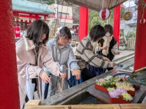 当日は、キャンパスに集合し、みんなで「徳島眉山天神社」に行きました!
