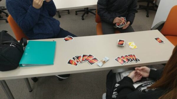 今回はUNOをみんなで行いました。全員で盛り上がりました!!