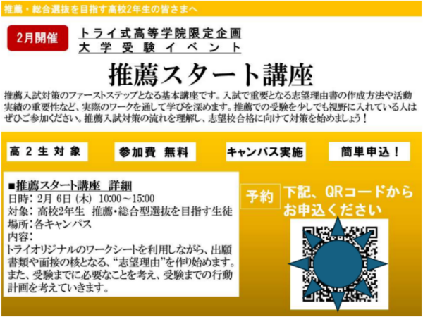 今日は『推薦スタート講座』についてお知らせです!