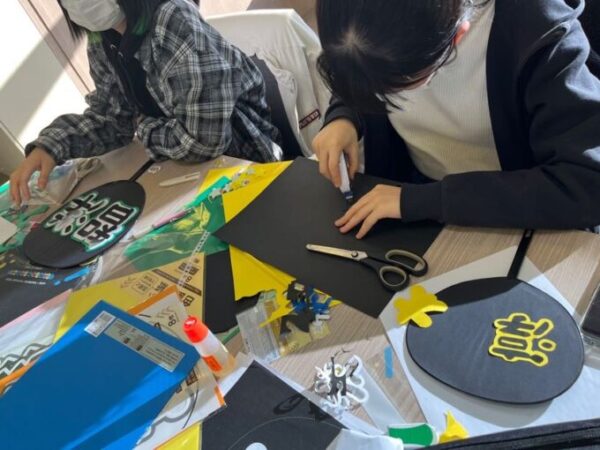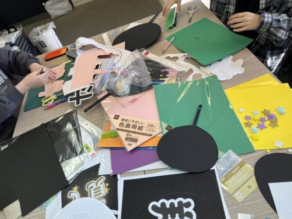 ペタペタうちわに張っていきます( ・ᴗ・ )⚐⚑⚐