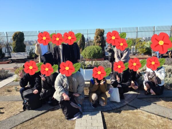 キャンパスを出たときは風が強く大丈夫かな・・と思いましたが、屋上に着いてみると雲一つなく、日差しが強いくらいで、屋外でのランチ日和でした🎵