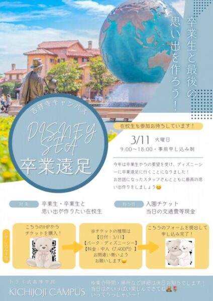 さて、本日はそんな卒業生からの要望を受けて企画しました「ディズニーシー卒業遠足」のお知らせです📢