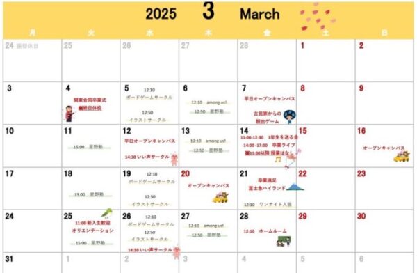 3月はオープンキャンパス(学校説明会)が4回も実施されます。