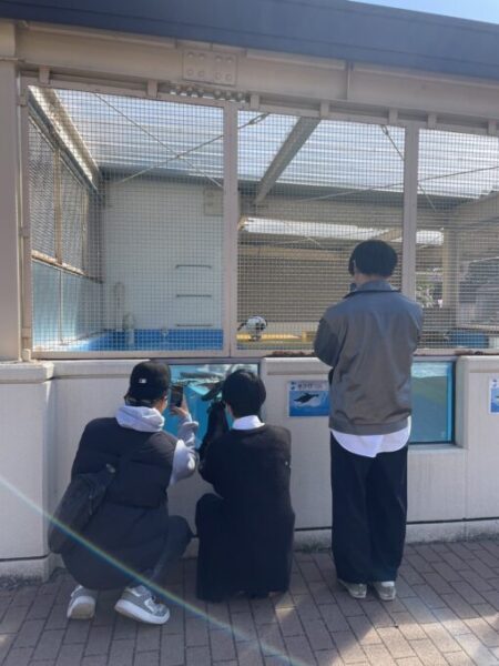 ペンギンプールに夢中な3人組🐧