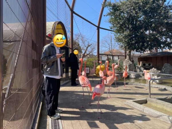 こちらは、フラミンゴに囲まれています🦩