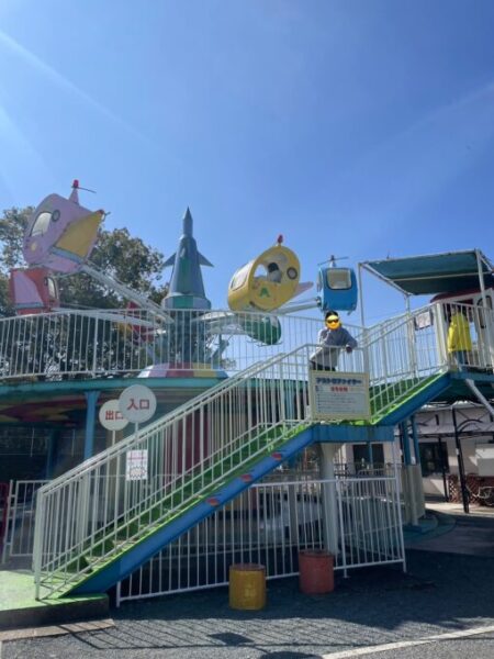 後半は、園内にあるミニ遊園地で遊んだり、じっくり鳥たちを観察したりと