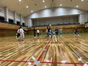 ふわふわの柔らかいボールですが、男子の剛速球に女子は「えっ、こわ」と一言(笑)