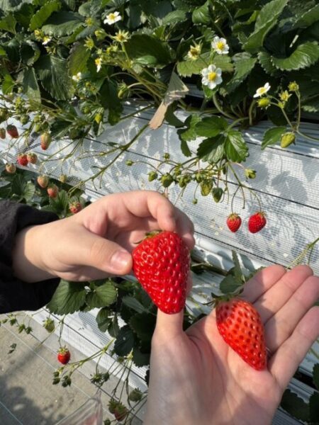 イチゴ狩りが初めての生徒もおり、戸惑うことも含めてとても楽しい体験でした!