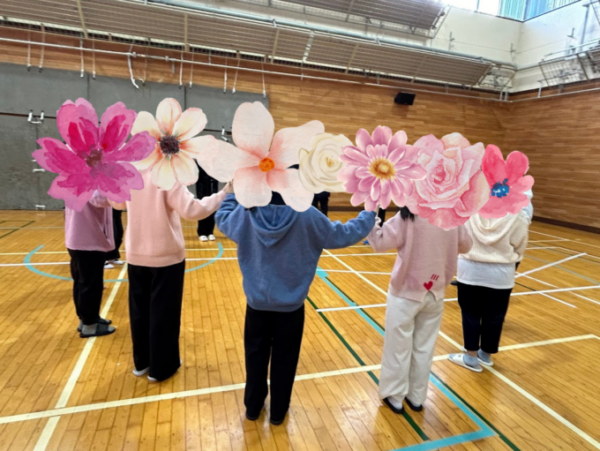 全員で体育館に集まって、ボール渡し、バドミントン、長縄跳びをしました🏀