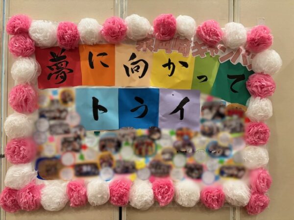 東岡崎キャンパスでも、習字のとても上手な生徒がいるので中心になる言葉を書いてもらい、その下部分には思い出の写真と、卒業生へのメッセージをみんなで書きました📝