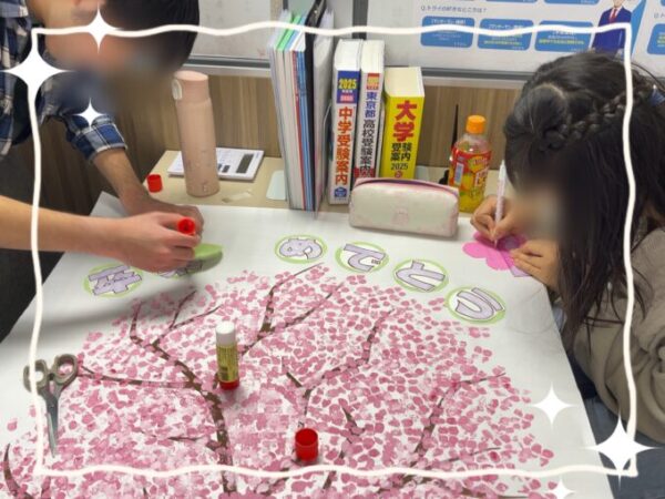 今年の国分寺キャンパスではメラニンスポンジを輪ゴムで縛った簡易的なスタンプを使い、桜の花びらを表現しました🌸🍃✨