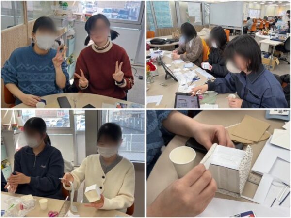途中、『全部布を貼って大丈夫だよ〜』と言った直後、蓋の部分は貼ってはいけないことに気づき😱慌てて『貼っちゃった人はすぐ剥がして〜💦』なんていうハプニングがありました💦いつも何かしらやらかすスタッフですが、みんな優しいので許してくれます🥹