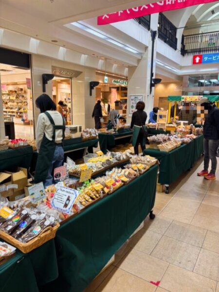 クッキーバザールの売り場✨たっくさんのクッキー、マドレーヌ、洋菓子、あられ、コーヒー、干し芋まで並び、次から次へとお客さんがいらっしゃいます。