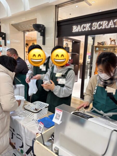 ボランティア参加当日、アルバイトの経験もない生徒さんたちもいたので、浦和コルソの従業員バックヤードの入口から入るところから、ドキドキ!わくわく!ちょっと緊張気味でしたが、「これは経験値あがりますね!」と頼もしい様子✊