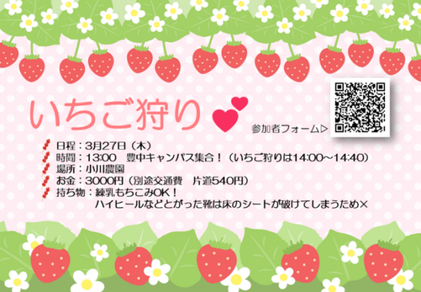 3月27日(木)にいちご狩りに行きます!