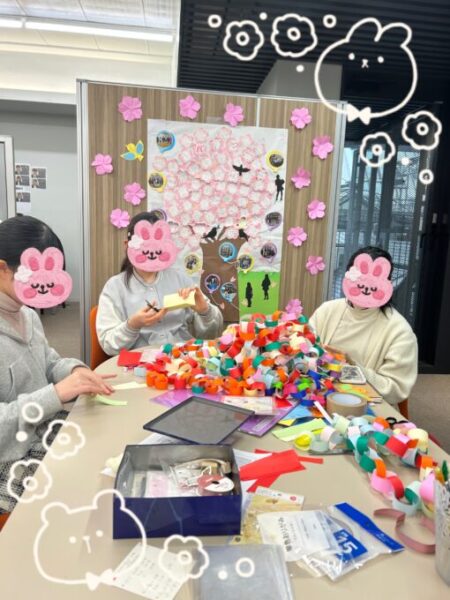 こちらの3人は当日会場を華やかにするための輪飾りを作ってくれています!