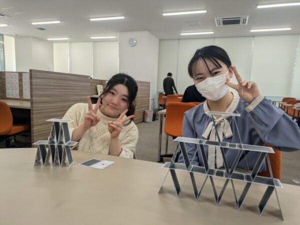 みなさんもお昼休みに丸テーブルに来て、トランプタワーに挑戦してみませんか??