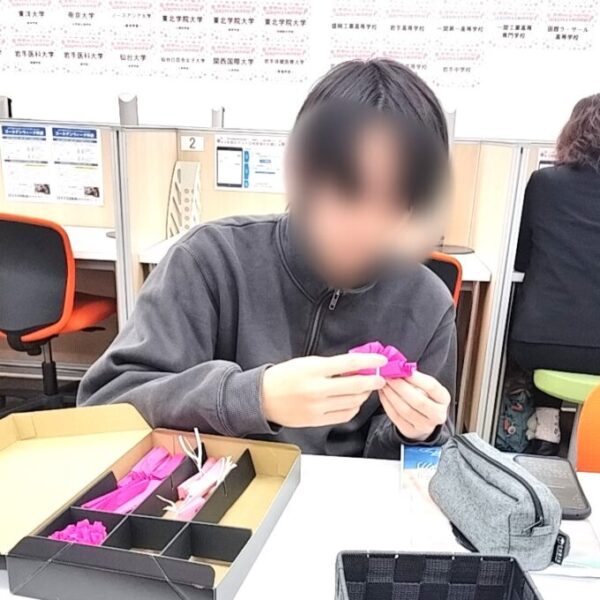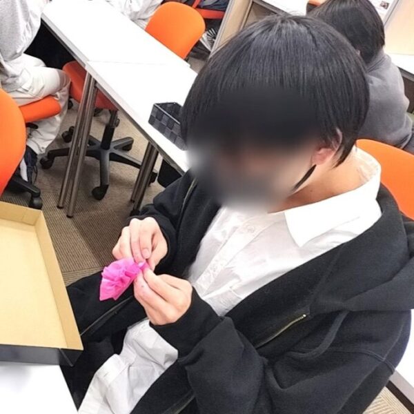 初めて花飾りを作る生徒もいました!生徒同士で教え合いながら作業♪