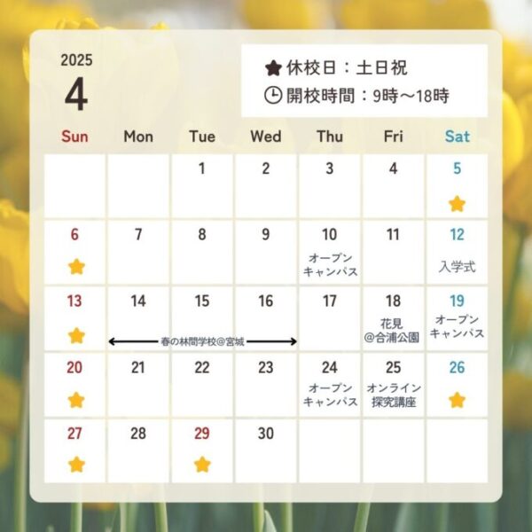 2025年4月のオープンキャンパスは次の日程で実施します。