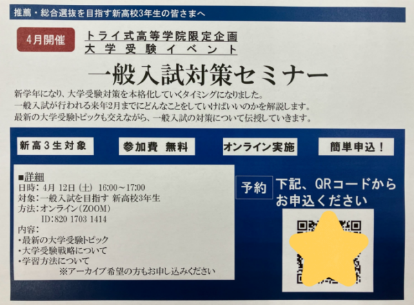 4月は一般入試対策セミナーを実施します✨️