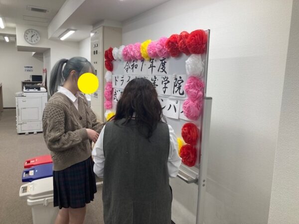 在校生たちがたくさん手伝ってくれたので、あっという間に花紙の飾りは完成し