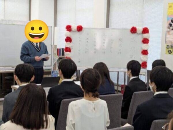 在校生代表の挨拶をしてくれるK君は緊張の面持ち😖